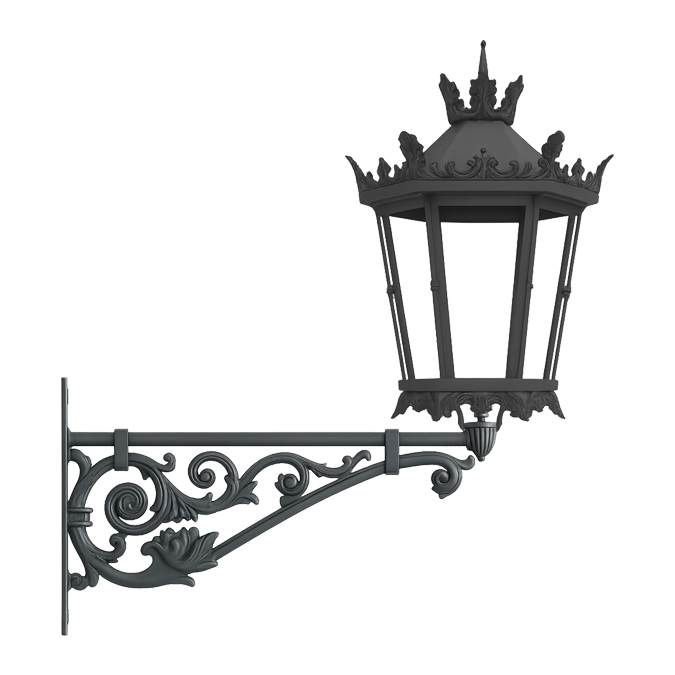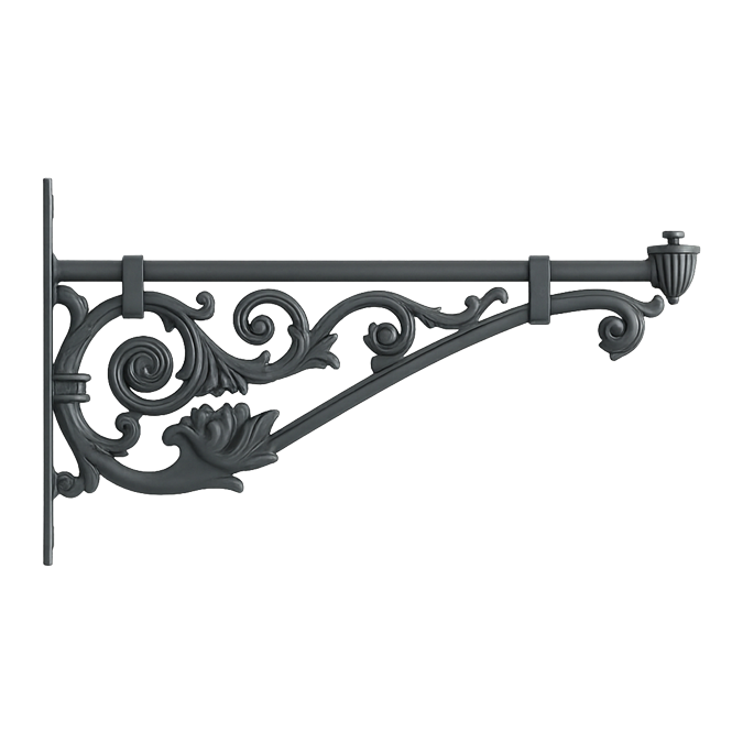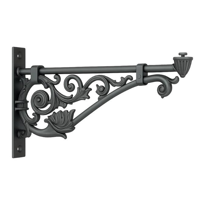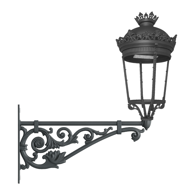 Brazo realizado en fundición de aluminio de estilo clásico, diseñado como soporte a pared o farola.