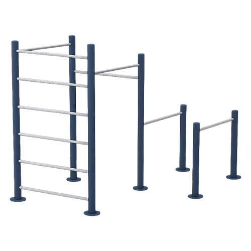 Diseñado para la práctica de calistenia, street workout y entrenamiento funcional, integra elementos para ejercicios de tracción, suspensión, abdomen y tren superior, permitiendo un entrenamiento completo.