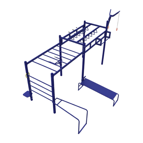 Elemento de calistenia compuesto por estructura modular en acero al carbono y barras de ejercicio en acero inoxidable.