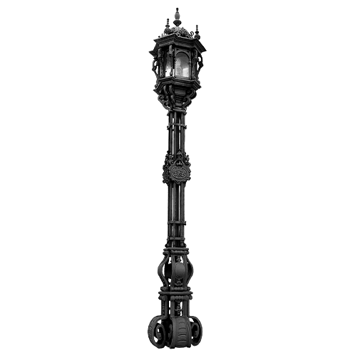 Columna ornamental de estilo clásico fabricada en fundición de hierro, de diseño imponente y alto valor decorativo.