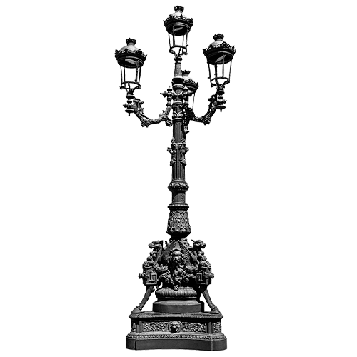 Permite configuraciones de dos o tres puntos de luz mediante distintos brazos y luminarias. Acabado negro forja con imprimación antioxidante y opción de personalización RAL.
