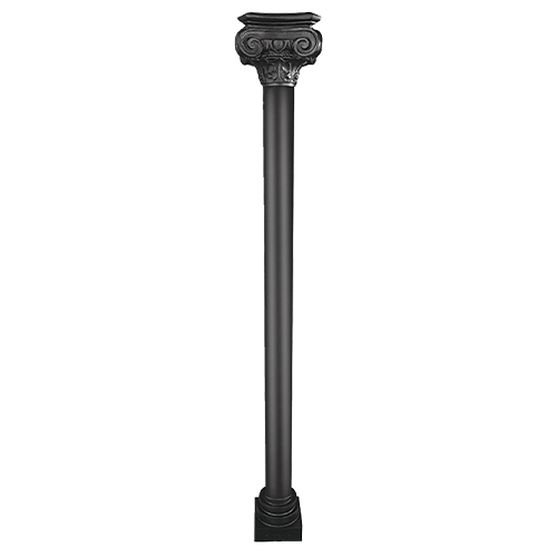 Columna ornamental modular fabricada con adornos en fundición de hierro y tubo interior de acero, indicada para espacios arquitectónicos exteriores de estilo clásico.