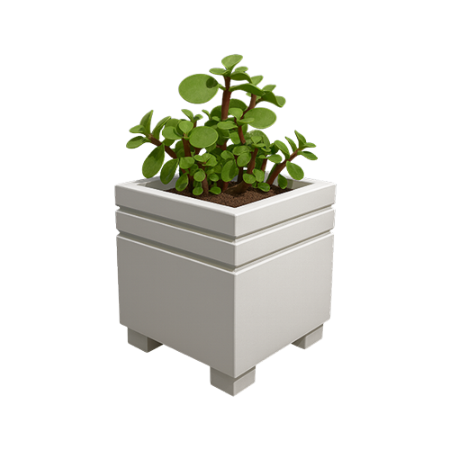 Jardinera urbana fabricada en hormigón prefabricado reforzado con fibras de vidrio, de diseño geométrico y carácter ornamental.