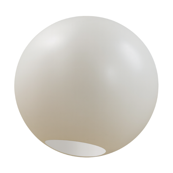 Luminaria esférica fabricada en polietileno de alta calidad, diseñada para su instalación en soportes, sobremuros y columnas decorativas, aportando una solución sencilla y funcional para iluminación exterior.