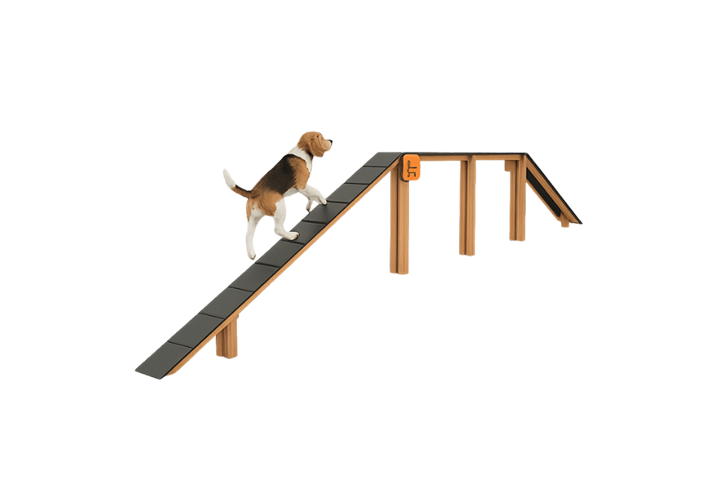 Destinado al entrenamiento del equilibrio y la coordinación del perro, favorece la seguridad en el desplazamiento sobre superficies elevadas dentro del circuito canino.