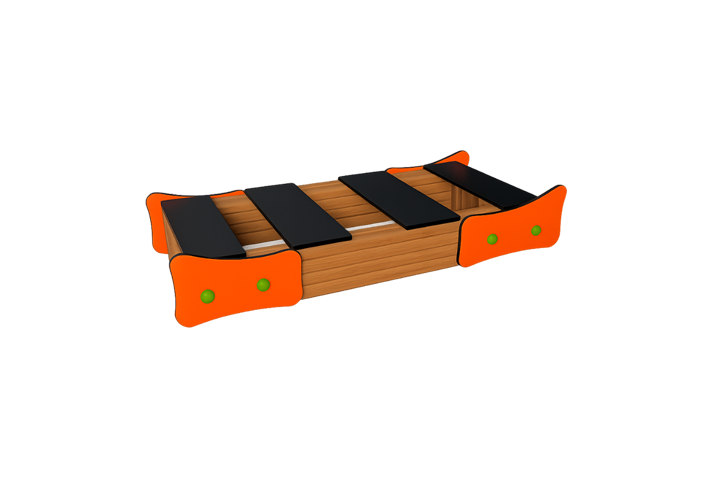 Elemento de entrenamiento fabricado con panel de polietileno de alta densidad resistente al vandalismo y antigrafiti, postes de madera de pino tratada en autoclave y tornillería galvanizada protegida.